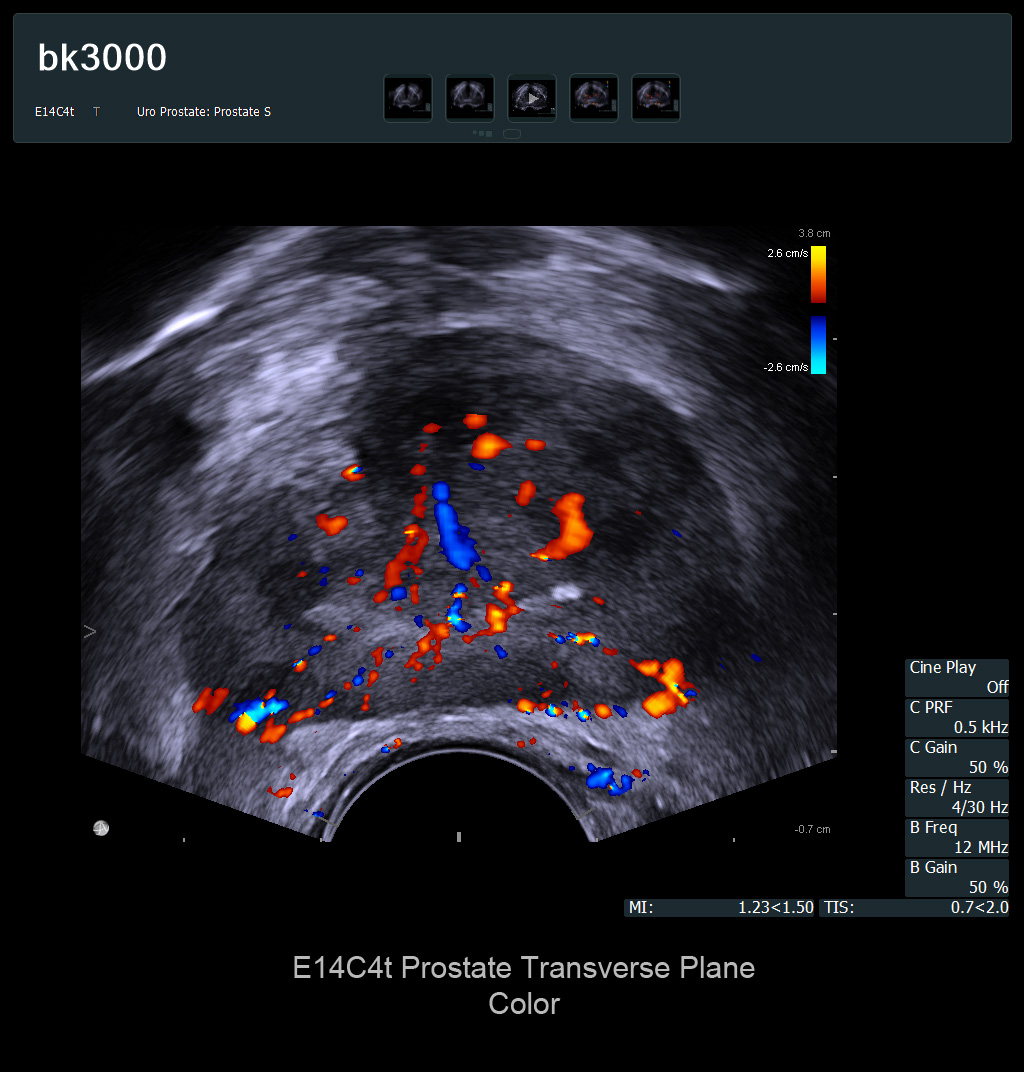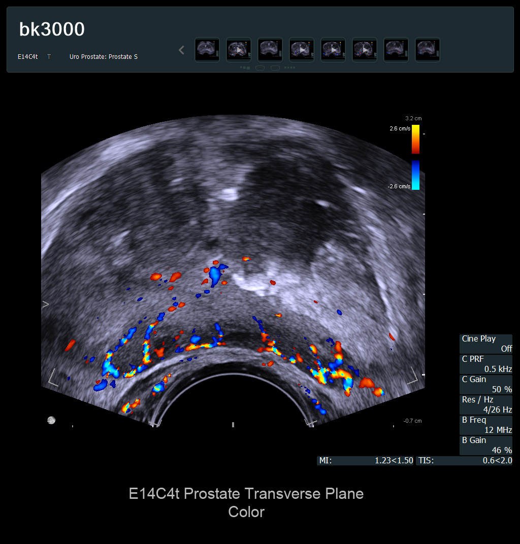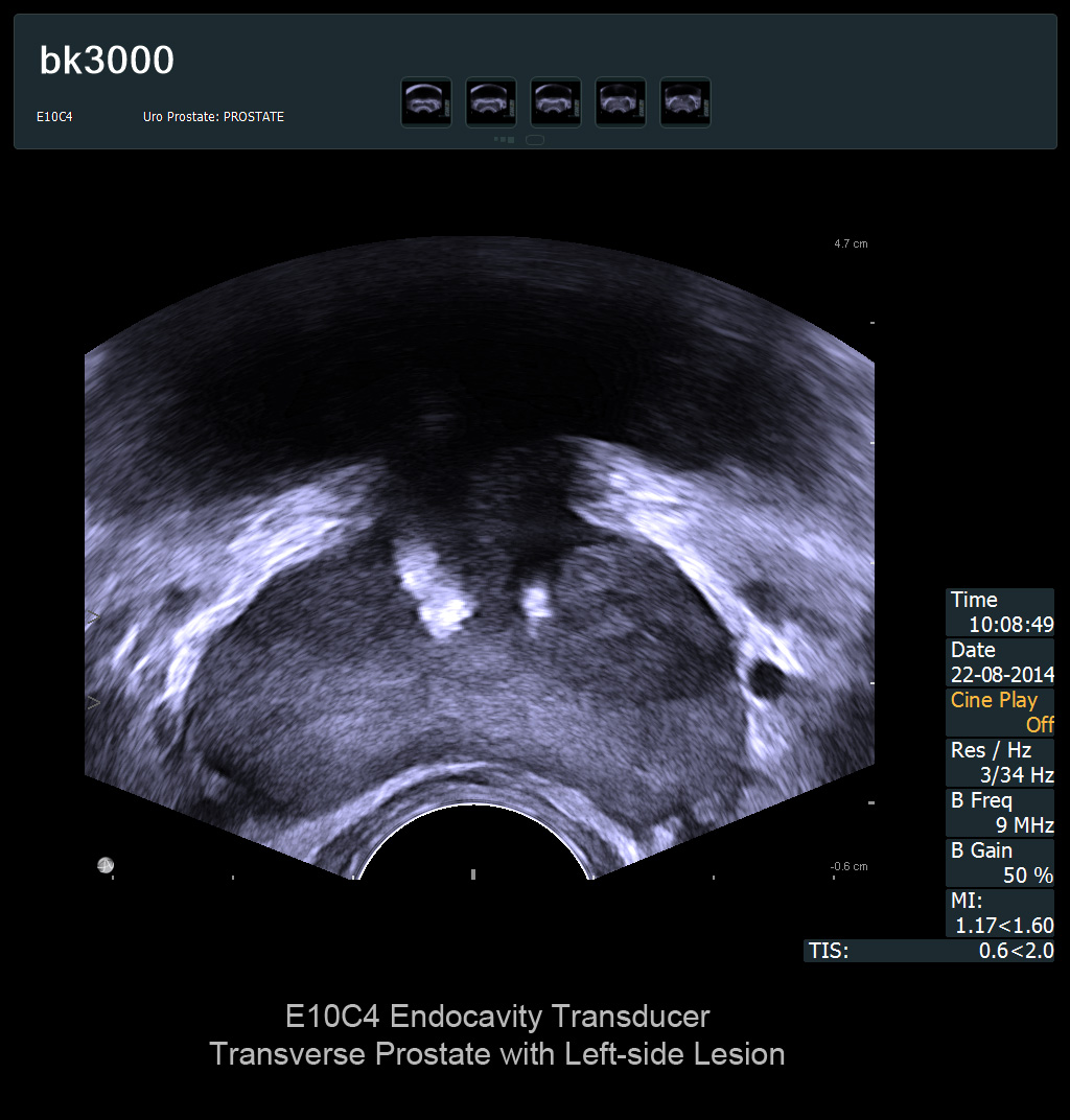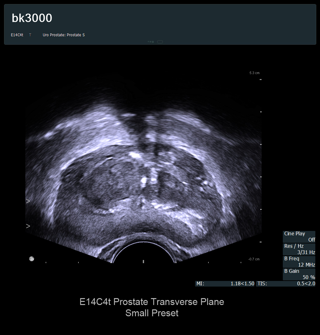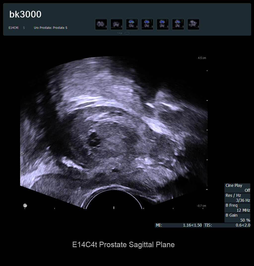 Performing targeted biopsies is more precise than ever thanks to the bk3000’s unique triplane transducer. Its simultaneous biplane and endfire imaging capabilities allow you to interrogate the prostate from apex to bladder neck and easily target all regions of the prostate with greater confidence and less patient discomfort.