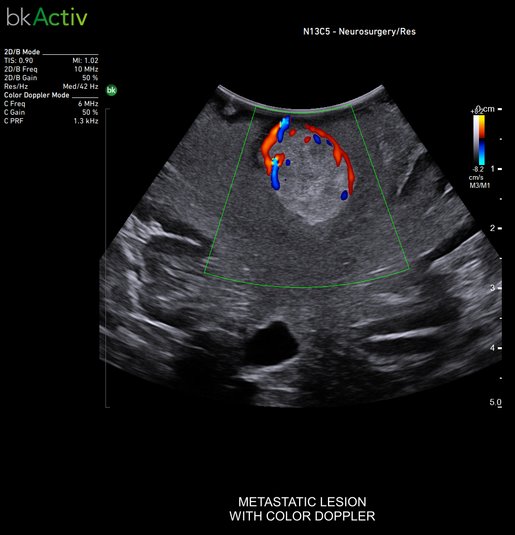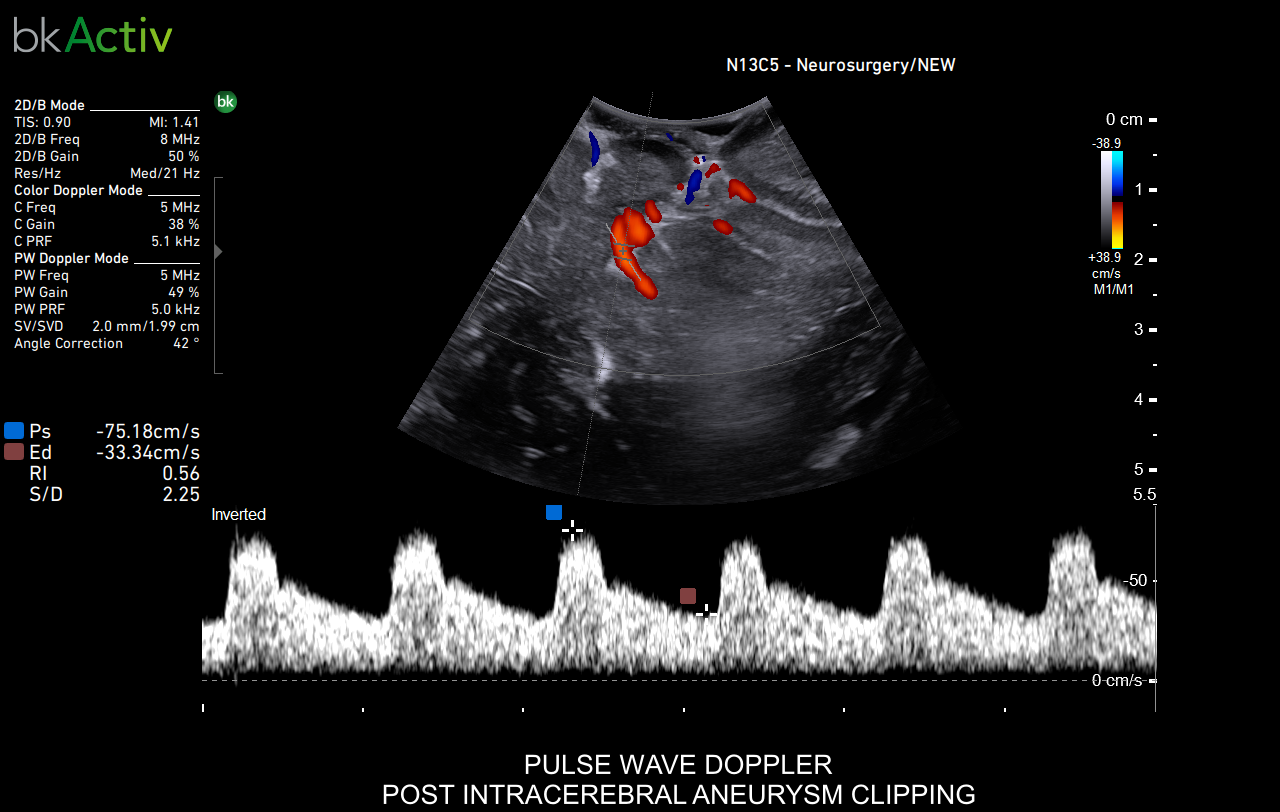 Enhanced neurosurgeon control with Smart Button™ on neurosurgical, sterilizable transducers. The remote control allows you to control the image in the sterile field, from where you stand.