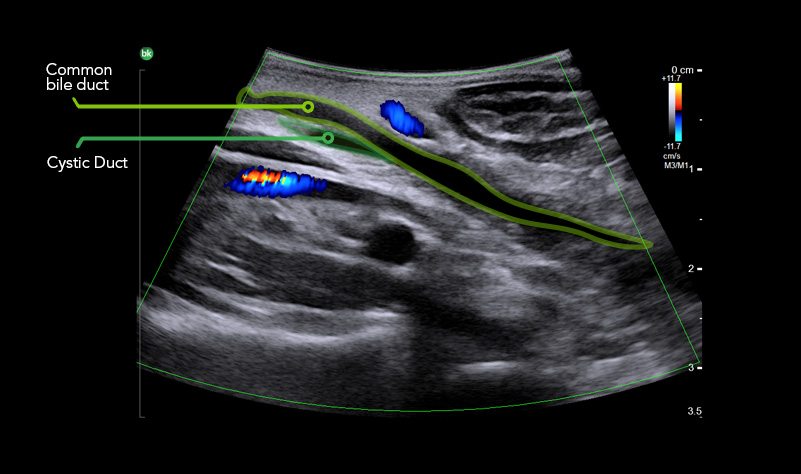 iUS is highly effective in visualizing biliary anatomy, which can be abnormal in as high as 40% of patient cases.8