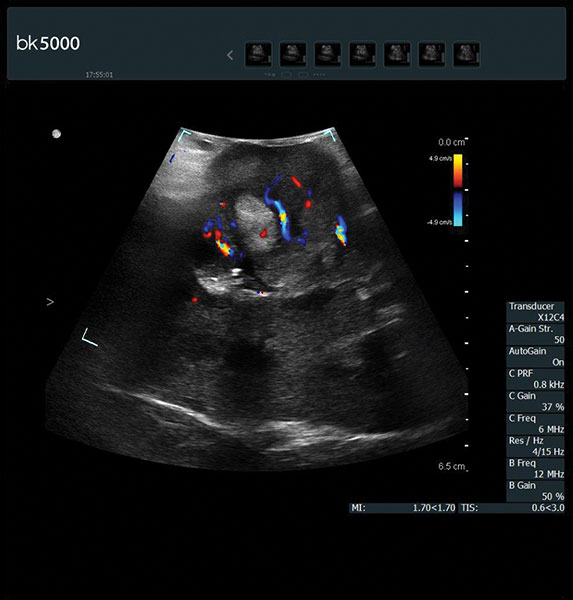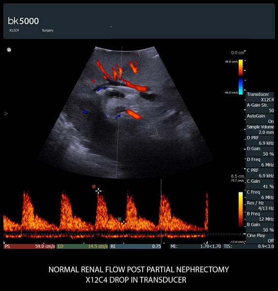 Ultrasound helps surgeons locate and visualize tumor margins, key arteries and other anatomical structures quickly and with greater precision during robotic-assisted surgeries.The bk5000 ultrasound system’s advanced technology can deliver exceptional images with very high contrast and spatial resolution, giving you the information you need to make critical decisions during surgery.